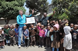 Im Kreise der Kinder übergeben wir an Meleck 2 Spenden: eine Spende über 888,- €, die von einer fränkischen Schule beim Fußballspiel Eltern gegen Schüler „erspielt" wurde und eine weitere Spende über 500,- €, die ein mittelständischer Unternehmer aus dem Raum Aachen gestiftet hat.